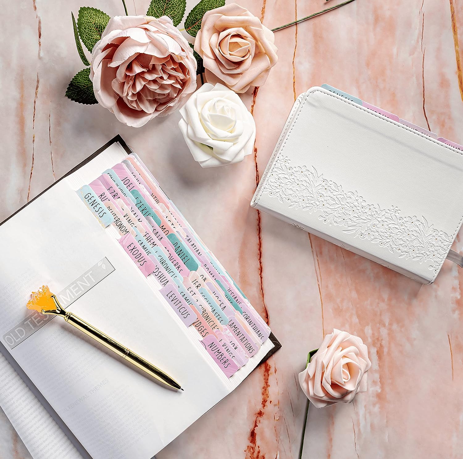 [We listened] to our customers! Our tabs have a gentle adhesive, preventing page tears. Easily adjust and reposition to highlight your favourite verses without any hassle. Customer feedback matters to us!